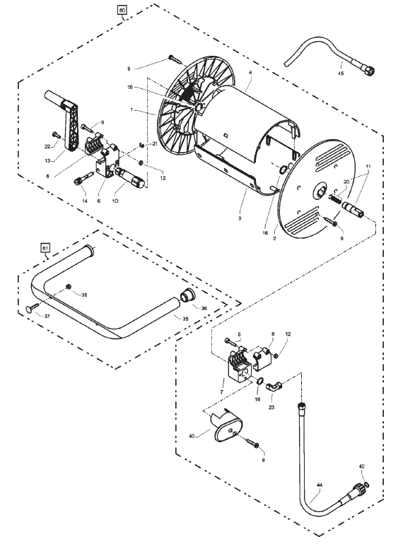 60 | Hose Reel Complete without hose without Retaining Bracket | 44392 | special order | |